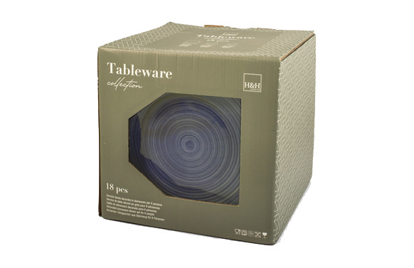 Servicio de mesa Harper de 18 piezas en gres decorado. Consta de 6 platos llanos de 26 cm, 6 platos hondos de 20,5 cm, 6 platos fruteros de 19,5 cm. Apto para lavavajillas y microondas. Apto para lavavajillas .